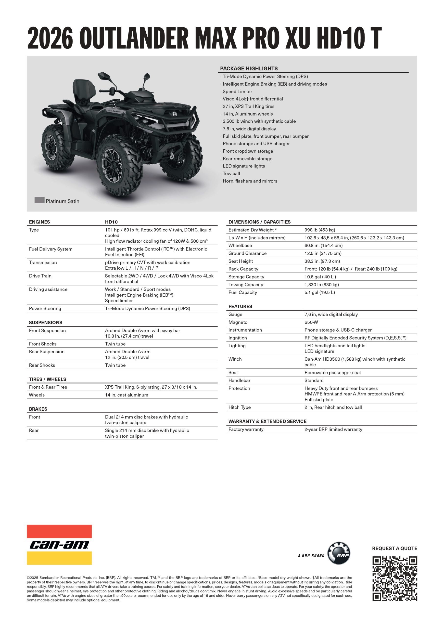 Can-Am Outlander MAX – PRO XU T – HD10 – T3b – 60km/h- Platinum Silver Satin